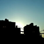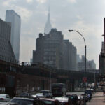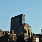 At night… the streets become rhythmical perspectives of glowing dotted lines, reflections hung upon them in the streets as the wistaria hangs its violet racemes on its trellis. The buildings are shimmering verticality, a gossamer veil, a festive scene-prop hanging there against the black sky to dazzle, entertain, amaze.